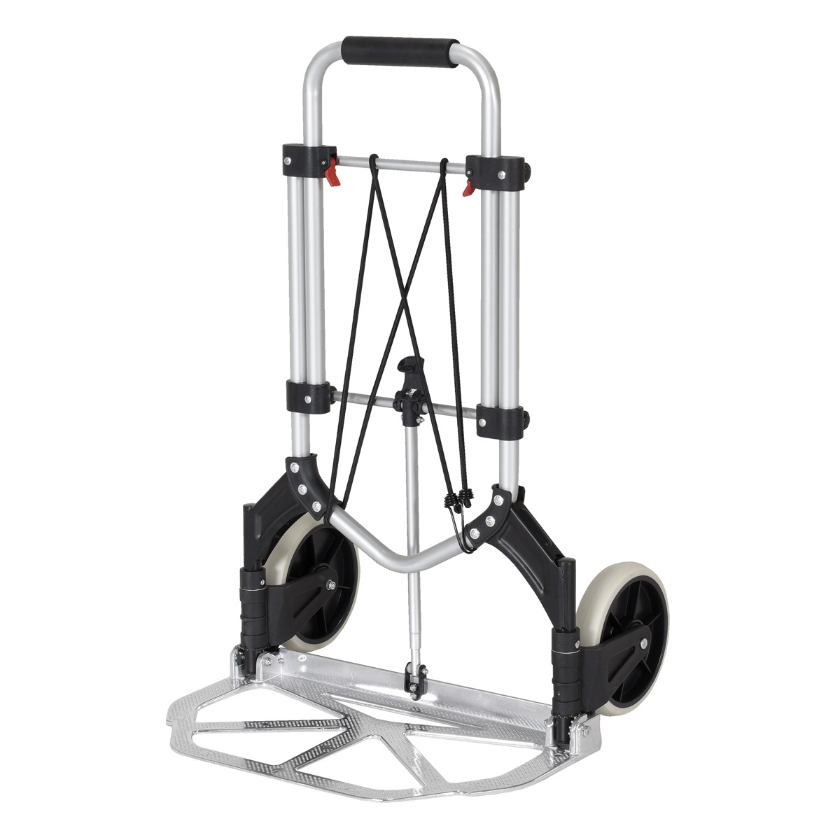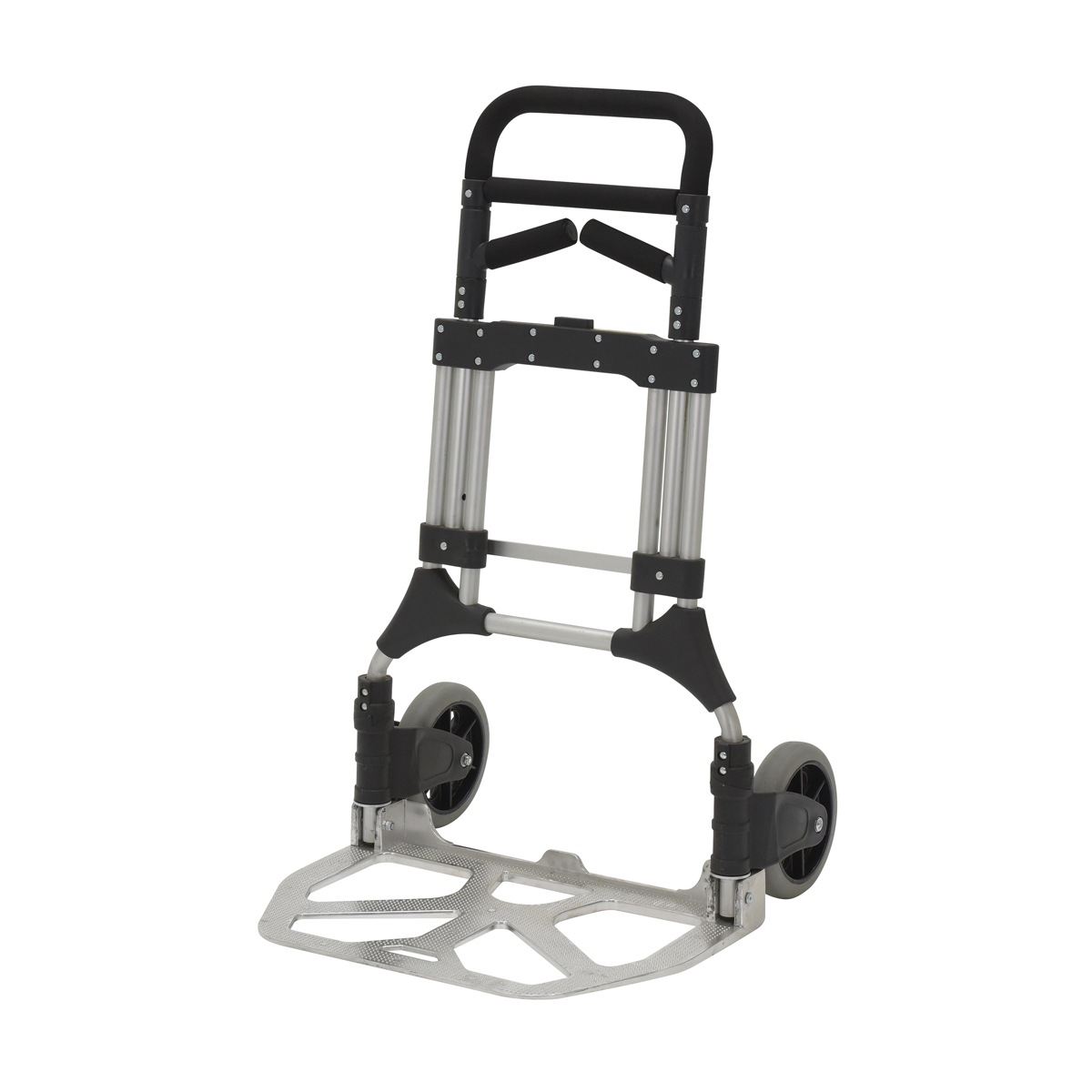 Designed for everyday, all purpose use. The handle and wheels fold up quickly and easily allowing you to store it in tight spaces such as trunks of cars, under tables, or in closets.