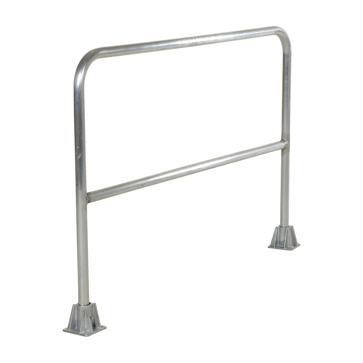 Protect people from uneven walkways and mezzanine drop off’s. This durable Pipe Safety Railing is made of aluminum schedule pipe that saves time when installing. The cast steel sockets accept wood when toe boards are required. Each mounting socket features a polished zinc finish to prohibit rust and requires four lag bolts for proper installation. The handrailing has a powder coat finish for durability. ADKR series safety rail products comply with U.S. Occupational Safety and Health Administration (OSHA) General Industry requirements for guardrail systems in 29 CFR 1910.29.”