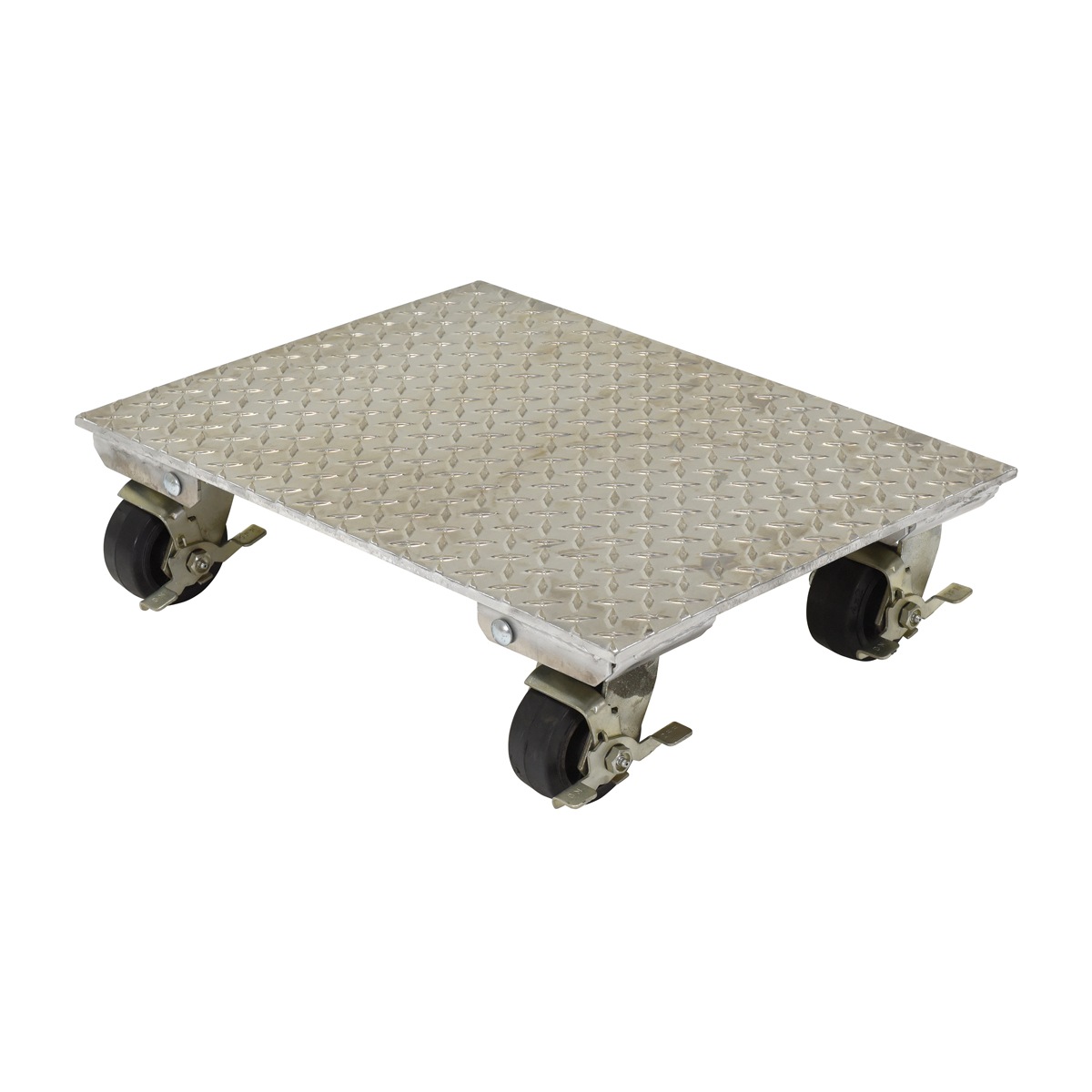 Aluminum Plate dollies are manufactured with a raised diamond pattern aluminum tread plate. A smooth deck is available upon request. Dollies roll on mold on rubber casters, four swivel with locks. Optional pull strap is available upon request.