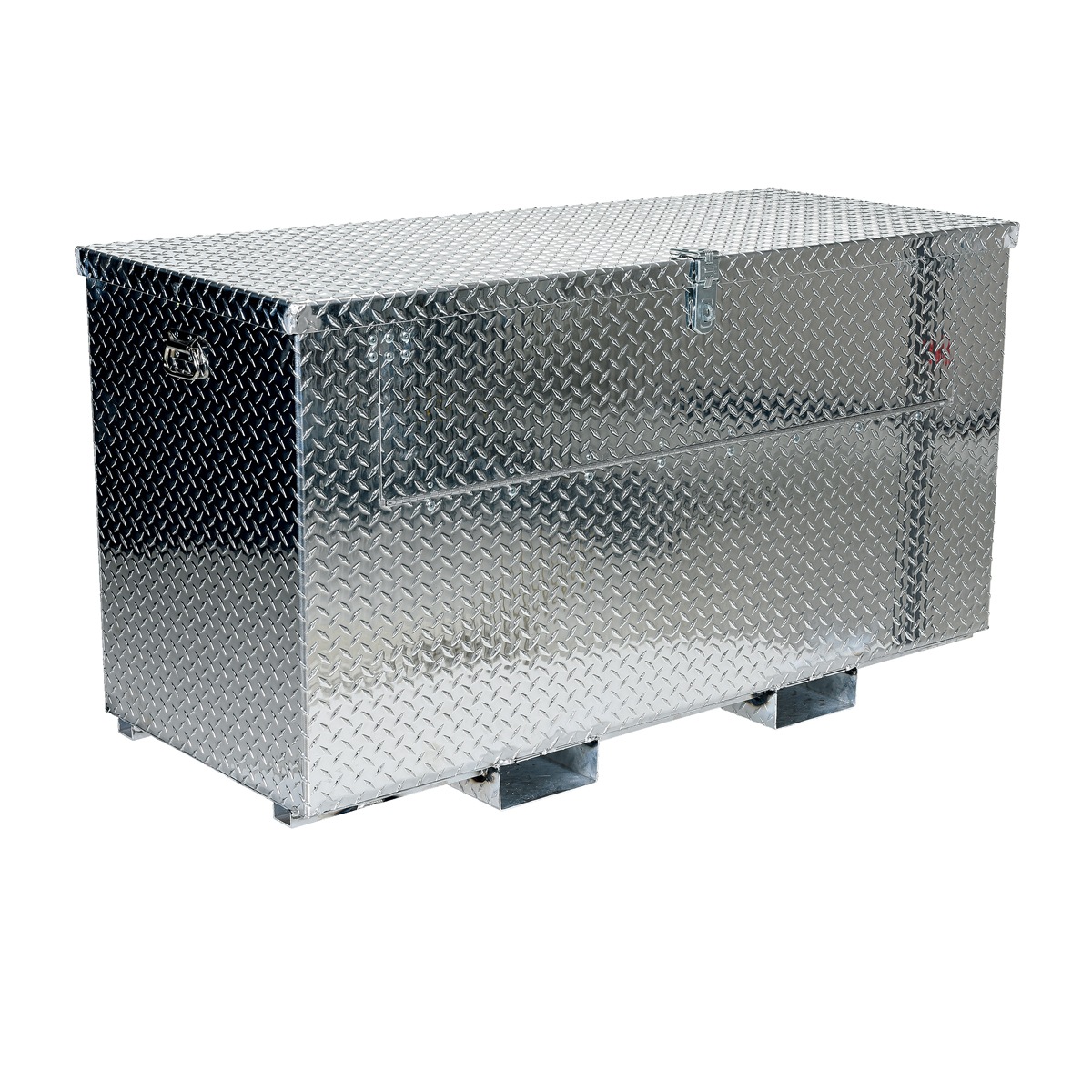 The Aluminum Portable Toolbox is excellent for storing and transporting equipment. The heavy duty welded aluminum tread plate construction is designed to tolerate the toughest of environments. Additional features also include ergonomically friendly carrying handles on each end for smooth manual transporting and a hinged lid which includes a lockable double hinged hasp for added security. Fork pockets are attached to the units underbelly for lifting and maneuvering between areas.