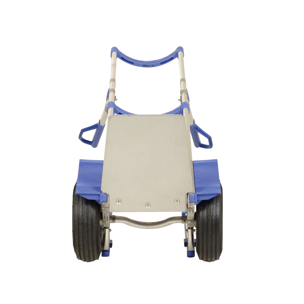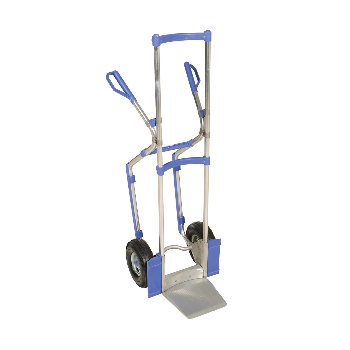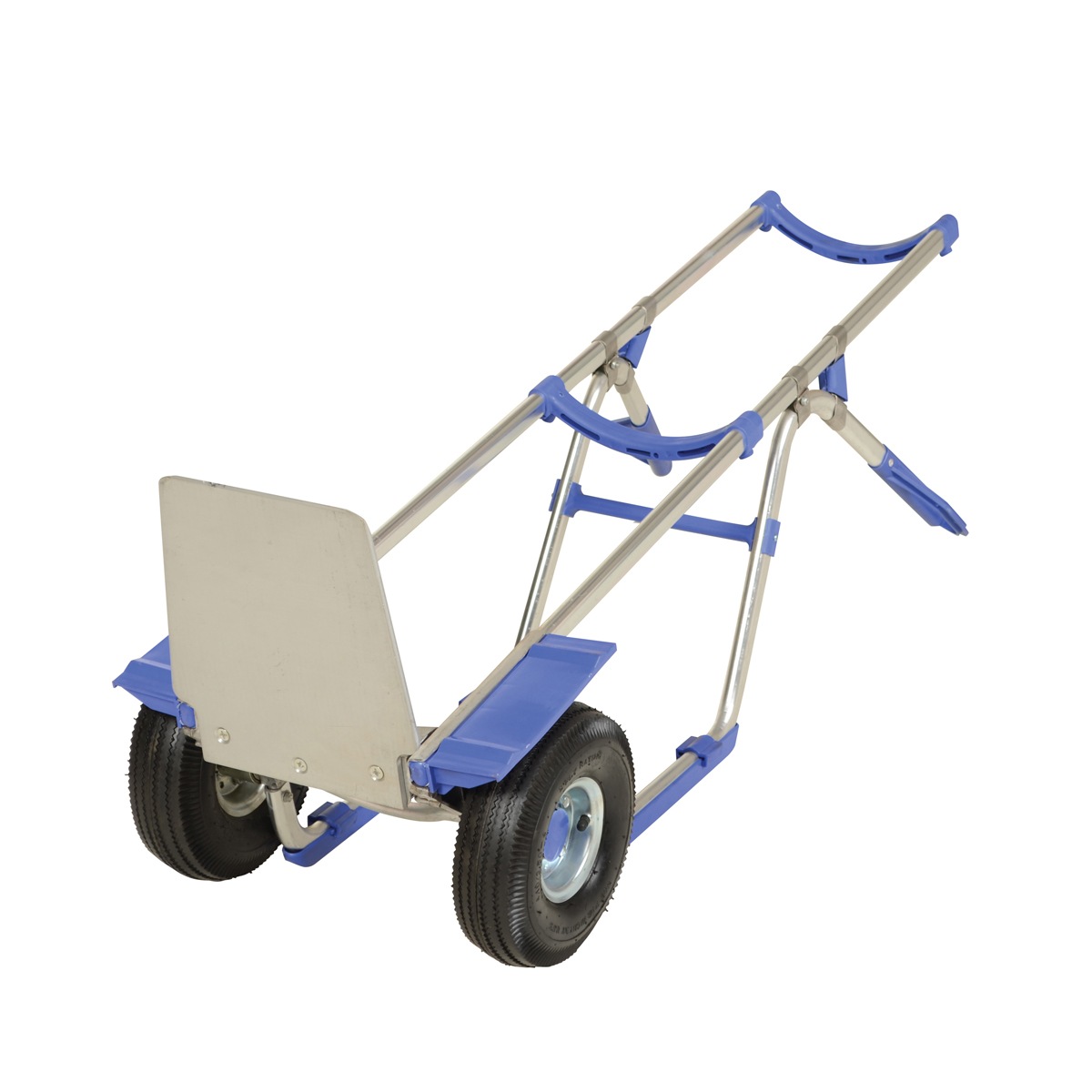 The heavy-duty constructed Aluminum Ergonomic Hand Truck has a lightweight aluminum design that provides superior control. This unit has knuckle guard handles, fold up nose plate, and curved back plate for transporting cylindrical objects. Transporting down stairs or steep hills is no problem with this hand truck.