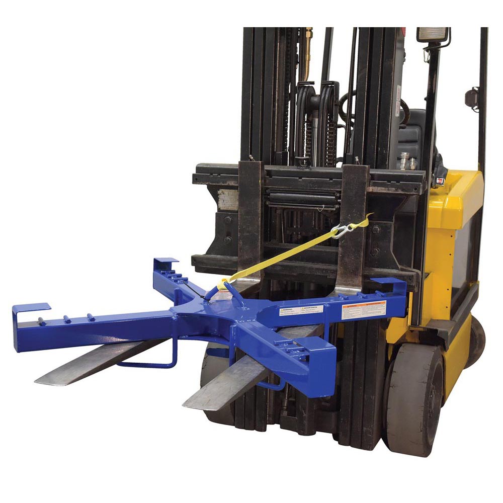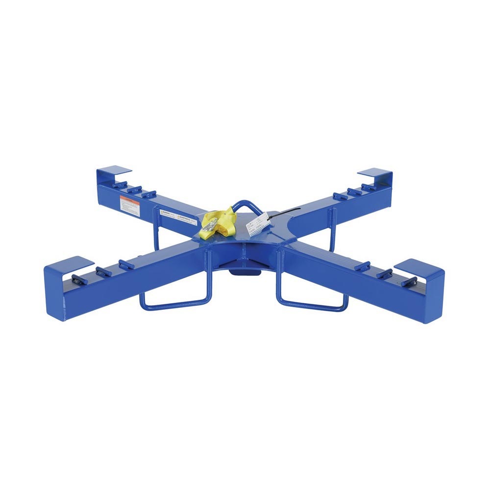 The bag lifter is ideal for industrial and manufacturing settings. The unit is constructed of powder coated steel for durability and added strength. The lifter can be used with the center mounted hook point for balanced lifting capabilities with an overhead hoist or with a forklift by utilizing the attached fork pockets (retaining strap included). After choosing which lifting style is best, secure the loops of the bag to the four strap points for safe maneuvering and transporting.