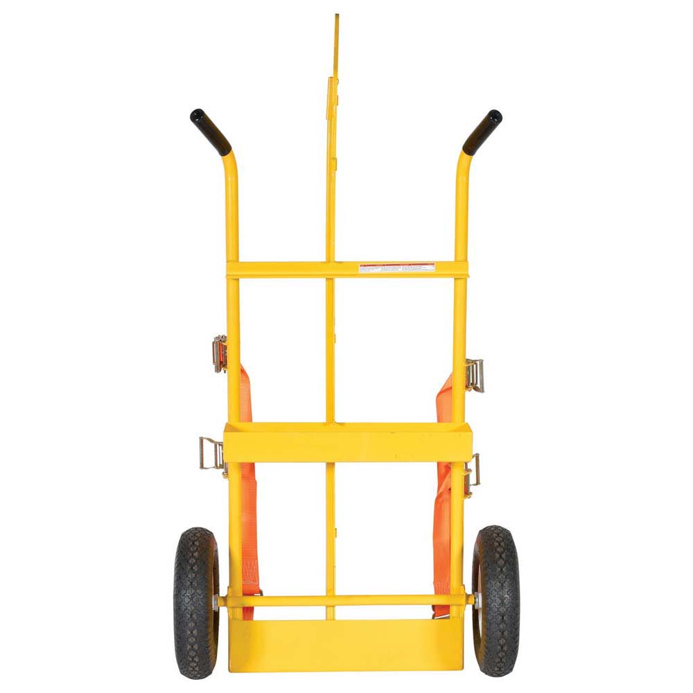 The Welding Cylinder Torch Cart is designed for transporting cylinders and cutting torch. Includes two (2) tank compartments with heavy-duty ratchet straps. Brackets are included for holding cutting torch and hose. Convenient open-top storage tray. Sturdy handles and large wheels for tilt-n-go portability. Overhead lift eye. Unit has fire protection Marinite 1 (one) material which provides a thirty (30) minute fire protection barrier as prescribed by OSHA standards 1910.253 and 1926.350. Welded steel construction with powder coat finish. Not designed for use as a storage means for gas cylinders.