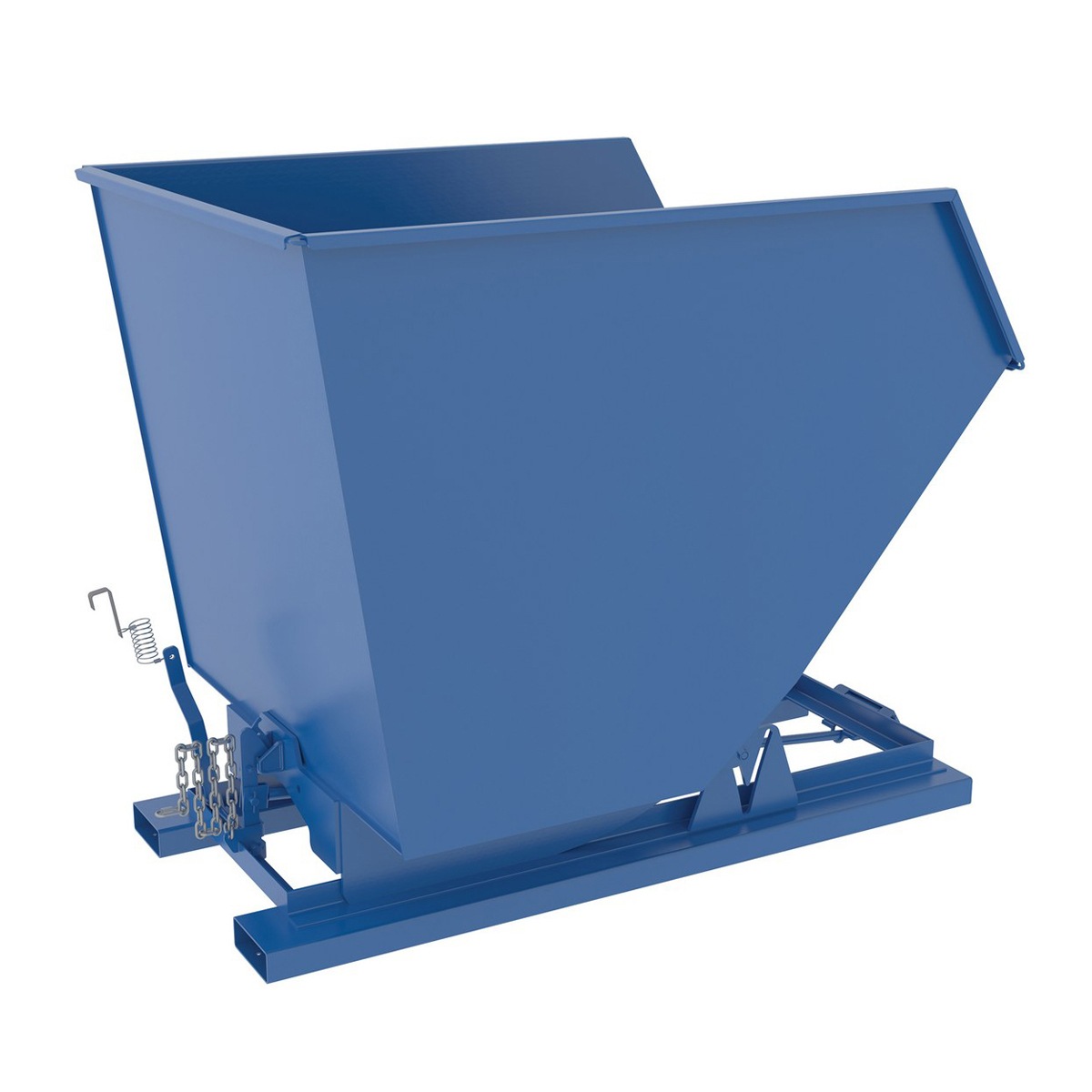 This Heavy Duty Self-Dumping Steel Hopper with Bumper Release automatically dumps when bumper release contacts the front of the dumpster. Hopper returns to an upright and locked position automatically after it dumps. Also includes a cable that may be operated from the seat of the fork truck to manually dump the hopper. The included safety restraint should be properly secured to a fork truck before dumping. (Length Dimension is measured at top of chute.) Self-dumping hoppers facilitate compliance with OSHA General Industry rule 29 CFR 1910.178(m)(5)(iii) by allowing lift truck operators to remain at the controls of their truck throughout the dumping process.