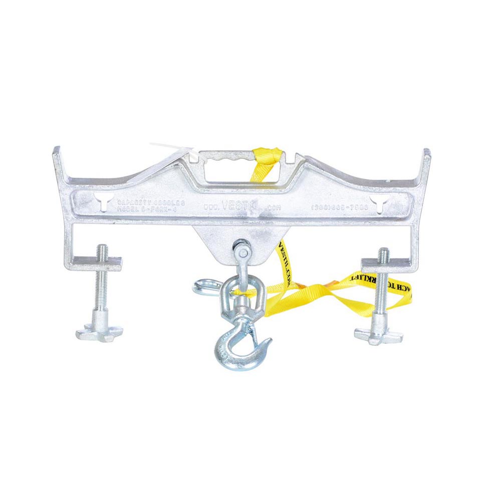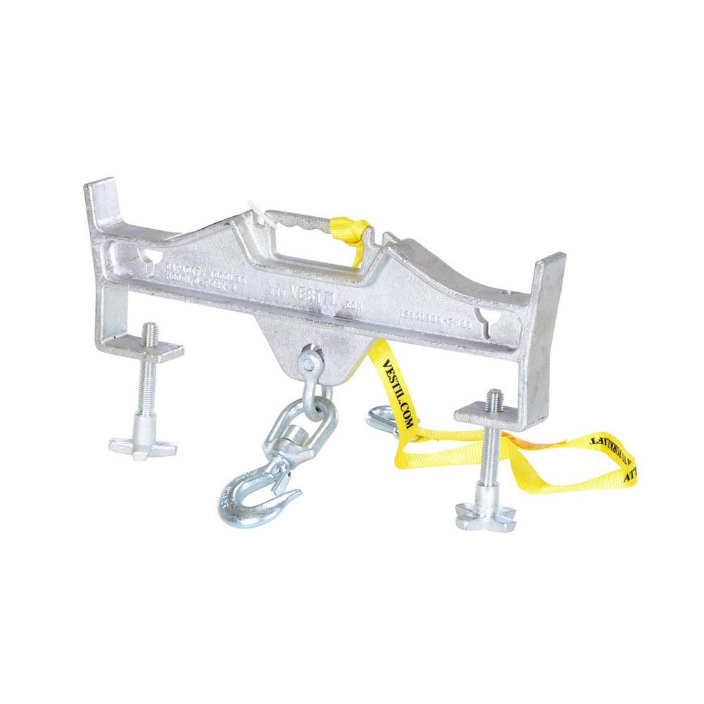 Convert your fork truck into a hook with anchor in a matter of seconds. The easy to attach Hoisting Hook does not require the assistance of special tools. Secured to the fork truck by means of a long safety restraint and screw clamps. Zinc plated hook with shackle included.