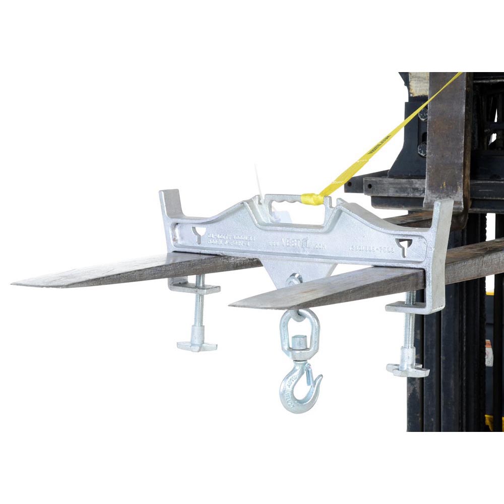 - Safety chain with snap hook attaches unit to carriage of fork truck