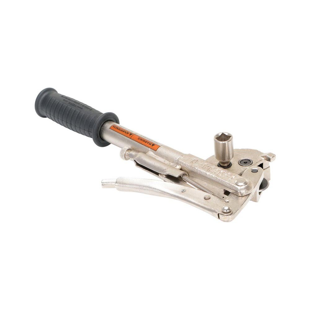 Quickly remove the head of a steel drum with this Express Open Manual Drum Deheader! Unique design is similar to a household can-opener and is very easy to use. Includes vice-grip style mechanism for securely attaching unit to drum. Inside cutting blade does not leave a sharp edge on the drum. Use only either a 1/2 inch manual ratchet wrench or electric drill to operate the de-header ratchet. DO NOT use a pneumatic or electric impact wrench to operate the deheader ratchet. WARNING: Improper use of this drum deheader might result in personal injury or damage the deheader. Ratchet not included.