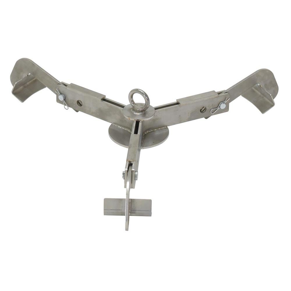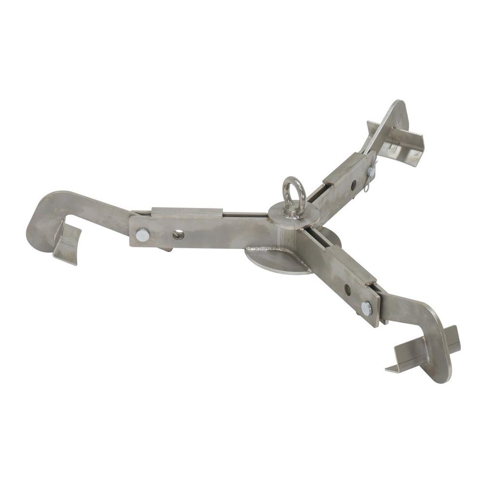 A stainless steel, adjustable, 3-point drum lifter for lifting, transporting, and stowing 30 and 55 gallon steel or plastic drums. Designed with a 3-point drum contact with stabilizing arms, which reduces damage to the drum and automatically engages the drum rim when lowered. Ideal vertical drum lifting tool which can be used with an overhead crane, hoist, or forklift attachment. Strong and durable – 304 grade full stainless steel construction. Designed for quick and easy one person operation.