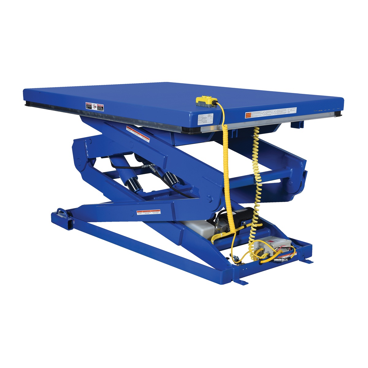 The Double Scissor Lift Table can achieve the extra reach you’re looking for. The full featured electric scissor table is used by all types of manufacturing and warehouse facilities. The safety features include: electric toe guard to protect pinch points during lowering of the table, brass safety velocity fuse to maintain platform height in the event of a hose or fitting failure, maintenance prop, and upper travel limit switch to stop table at maximum height reducing motor wear. The motor is totally enclosed with optional voltages available.