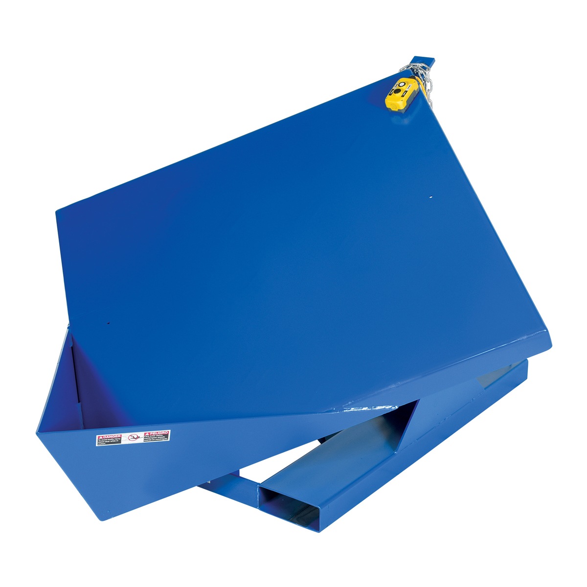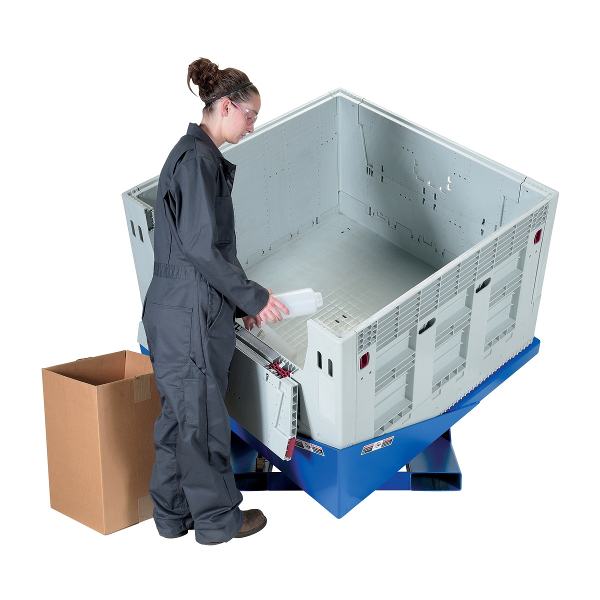 - Corner tilt design can tilt pallets, crates, boxes, and baskets