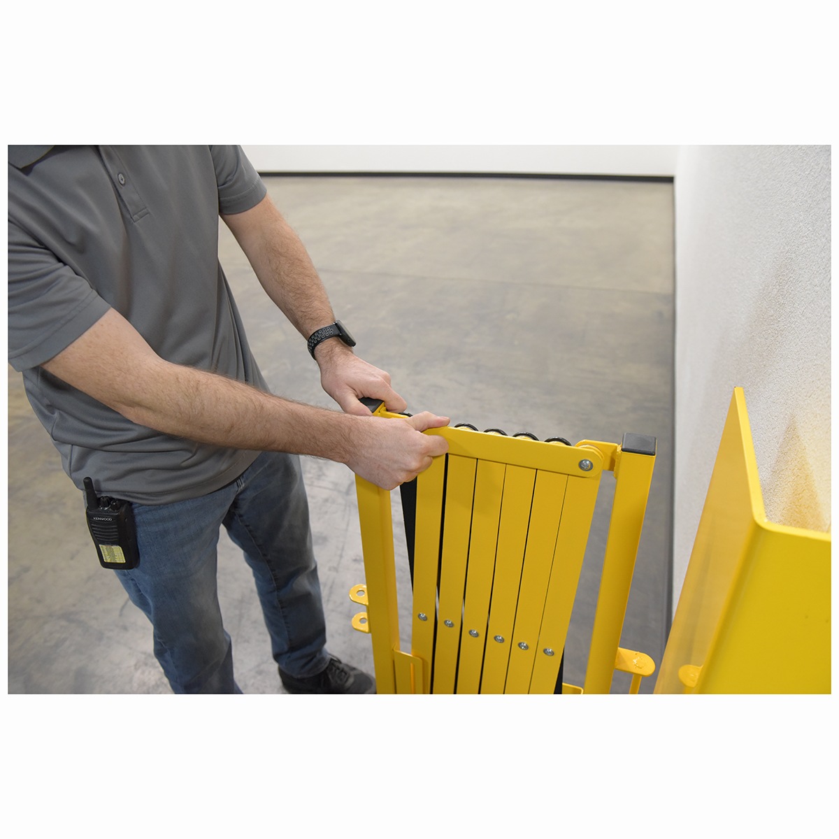Expand-A-Gate is designed to set up quickly and easily wherever and whenever they are needed. Ideal for preventing potential accidents. Lightweight design allows personnel to quickly retrieve the gate and limit access to unsafe areas. Smooth operating scissor action. Interlocking and nestable.