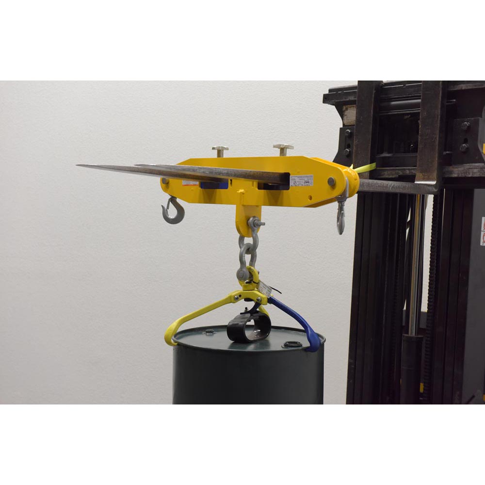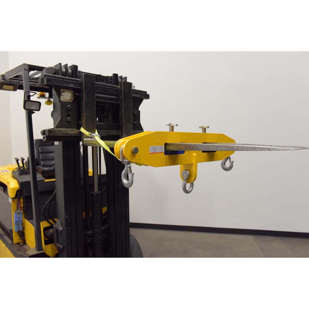 A Forklift Lifting Beam is the perfect asset for maneuvering and transferring heavy objects. The centrally located shackle between two fork pockets allow the user to safely attach to the unit and transport to the desired location. Hooks are also attached to the outside of the unit for a more secure lifting experience. The strong steel construction with a bright finish enables high visibility from both near and far. Secure to the fork truck by means of a long safety restraint and screw clamps.