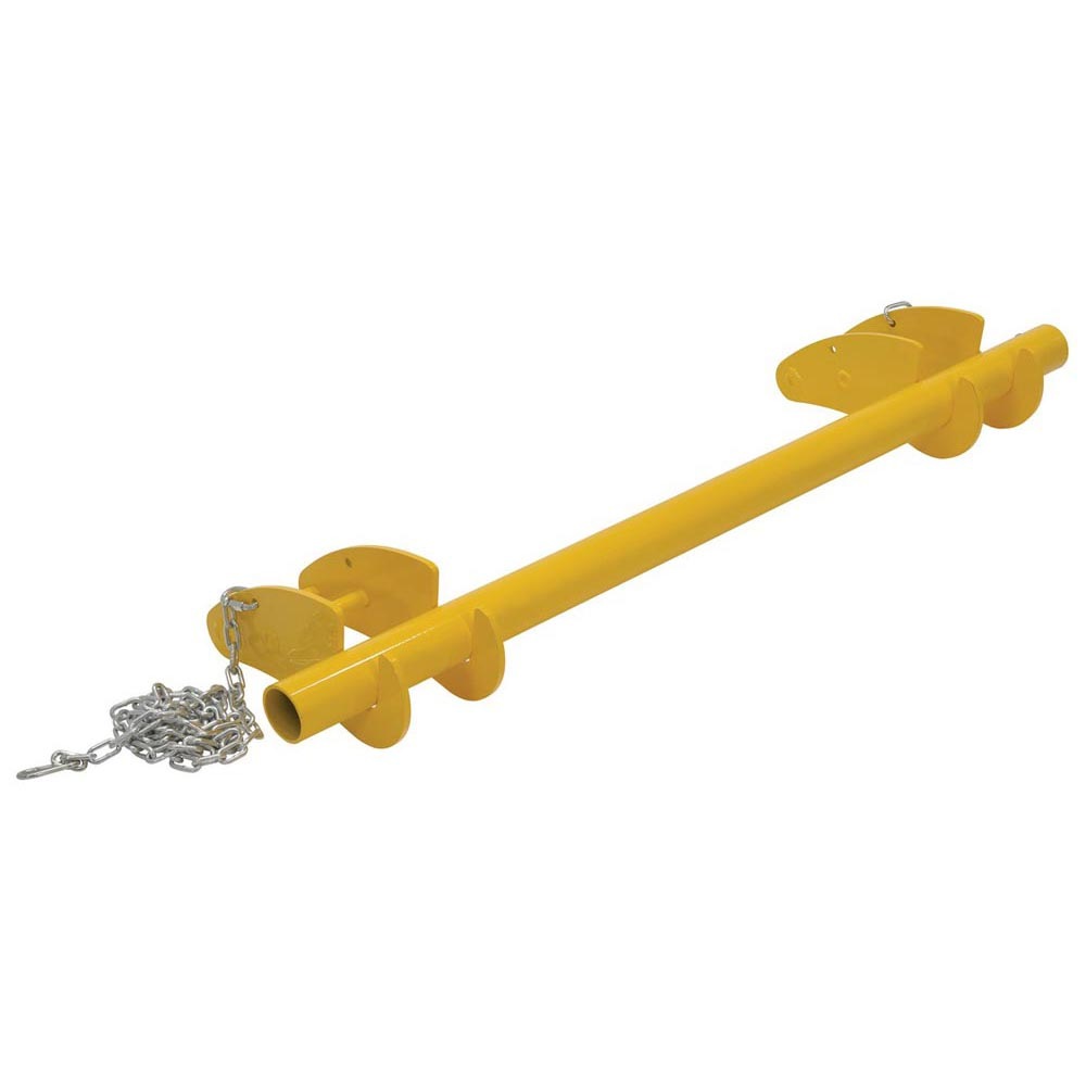For use with 4″ wide forks. Includes two 72″ long safety chains with quick clasp and a 23/8″ reel support bar (48″ long). Distance between forks not to exceed length of support bar.