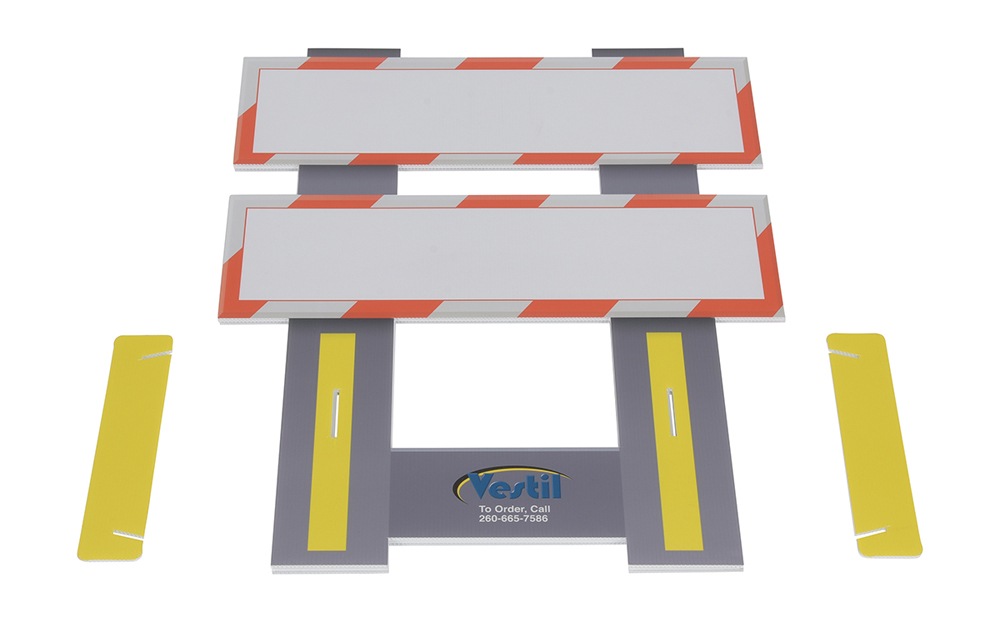A folding safety barricade blocks access to areas, while also conveying an important message. The plastic construction is durable for consistent use in a wide array of situations. With a lightweight design the unit can be transferred between areas quickly and easily. When in place, the height and width of the barricade provides personnel with area awareness.