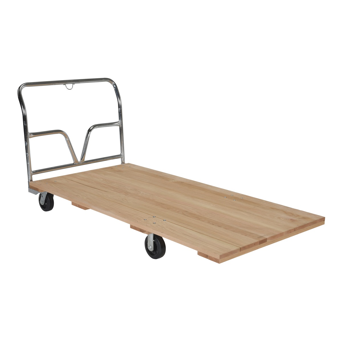 The Hardwood Platform Truck is the economical solution to your material handling needs. The ergonomic handle stands vertically for a better standing position. The platform includes a unique design that allows products lay flat without disturbance.