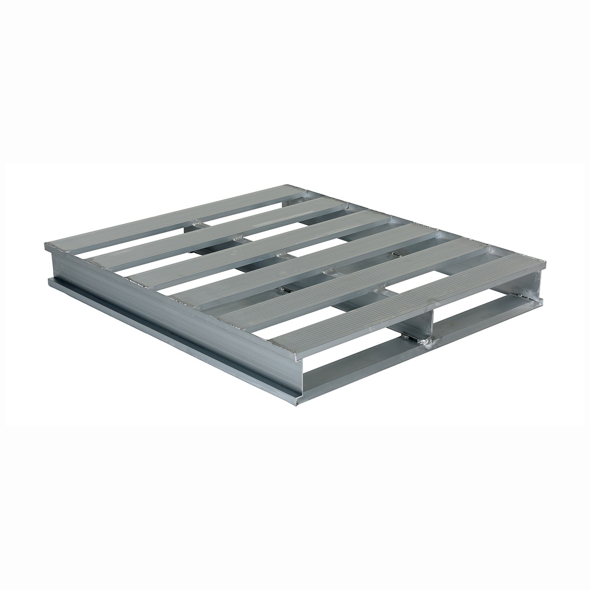 The welded Aluminum Pallet is what the food and chemical industries have always wanted. The unit stands up to high-power steam, brushes, or pads. It’s easy to clean with a power washer. Features a non-skid surface for easy transportation of all products. This pallet is durable and re-usable with a two-way entry for pallet and fork truck use.