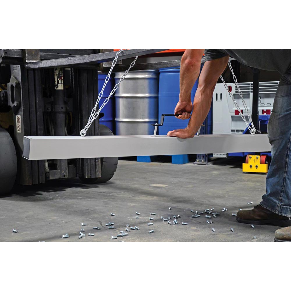 The Hang-Type Sweeper easily attaches to your vehicle so you can sweep parking lots and warehouses. The load-release lever drops the debris where you want.