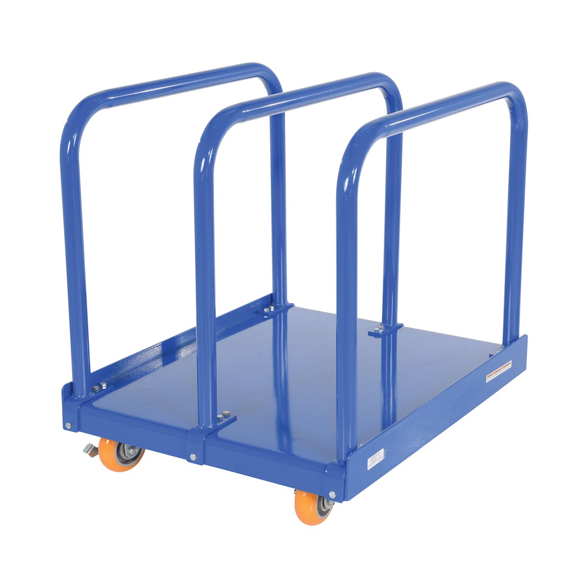 Heavy-Duty Panel Cart is the perfect panel cart for transporting plywood, drywall, paneling, doors, etc. This cart has a baked-in powder-coated toughness and features a side retainer lip that keeps cargo on the deck. Poly casters included for smooth maneuvering.