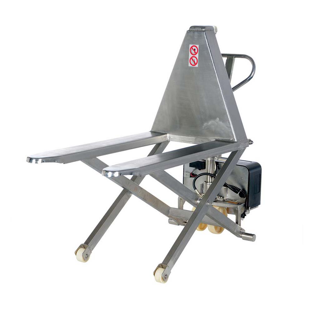 The Tote Lifter is designed to lift open bottom skids, boxes, and baskets. Lifter is DC power with rocker switch to raise or lower. This DC powered unit includes an on-board battery charger. The side stabilizers lock lift in place when load is raised over a certain height.