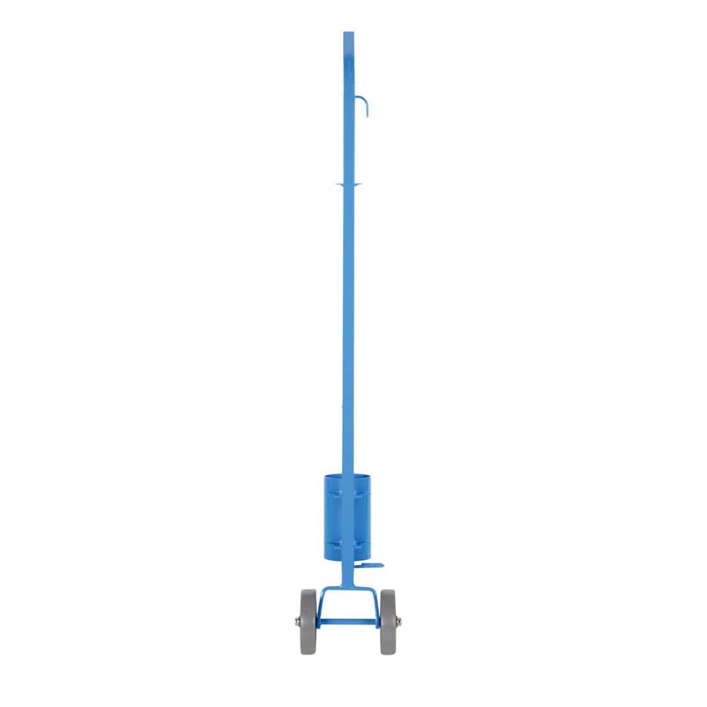 The Portable Economical Applicator has a simple pull trigger to mark paint lines on floors. It holds one standard aerosol can of inverted marking spray paint. The wheels assist in creating an even line and the applicator has a steel construction with a painted finish.