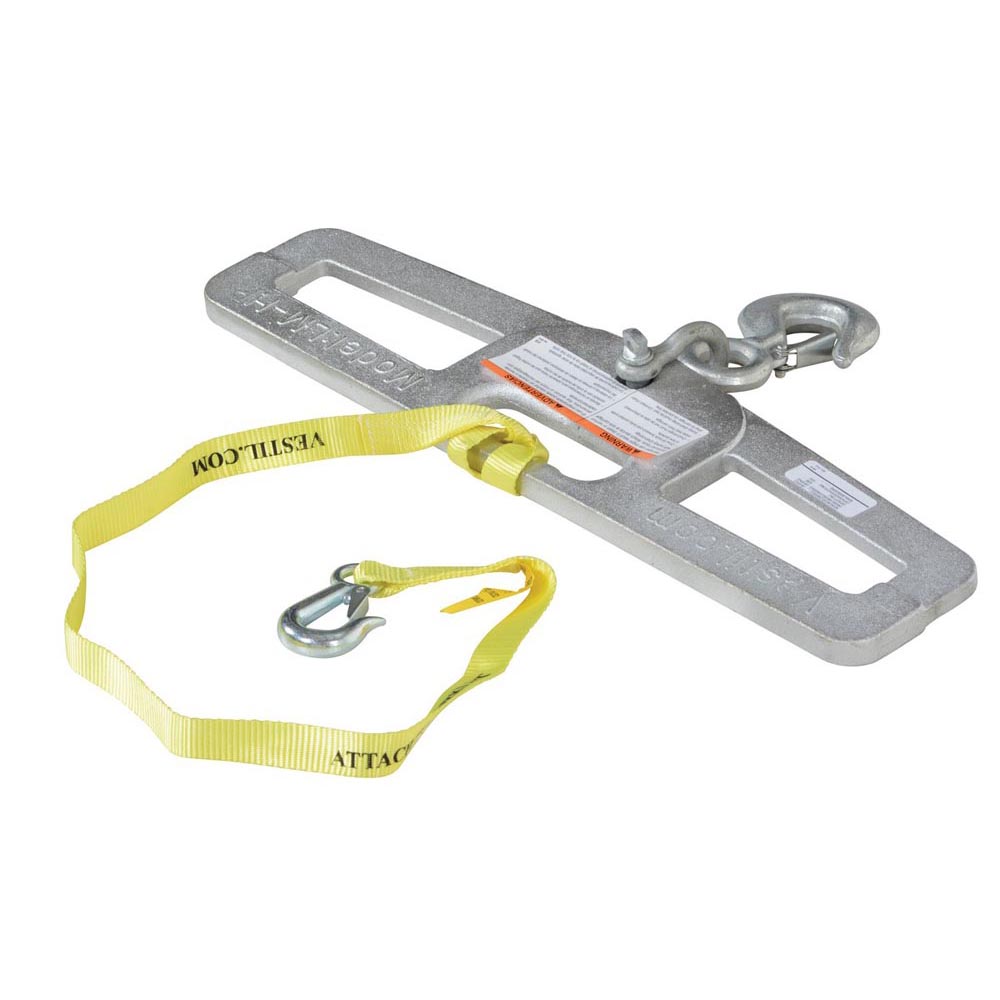 The Hook Plate enables any fork truck to safely lift a load using chains, cables, or slings. Features slanted fork openings to prevent the hook plate from being used upside down. A hook with anchor shackle is included.