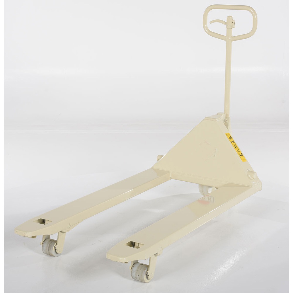 A Cold Room Hand Pallet Truck is wonderful for freezer environments. It’s built to last and endure the harsh temperatures and effects of consistently cold settings. A manual hydraulic pump design maximizes functioning simplicity. Nylon wheels keep surfaces from getting marks and scuffs during movement. Powder coat finish for durability and long lasting toughness.