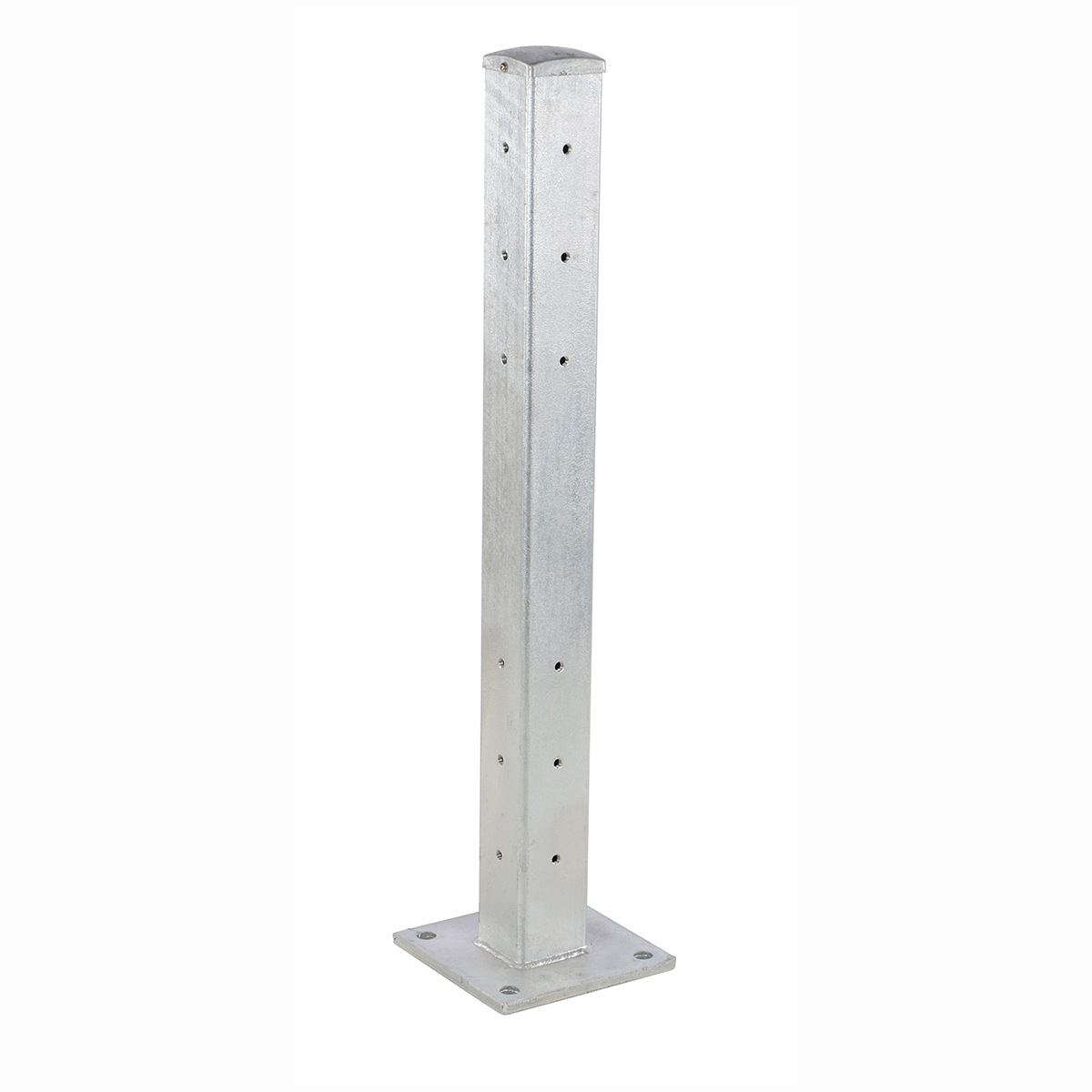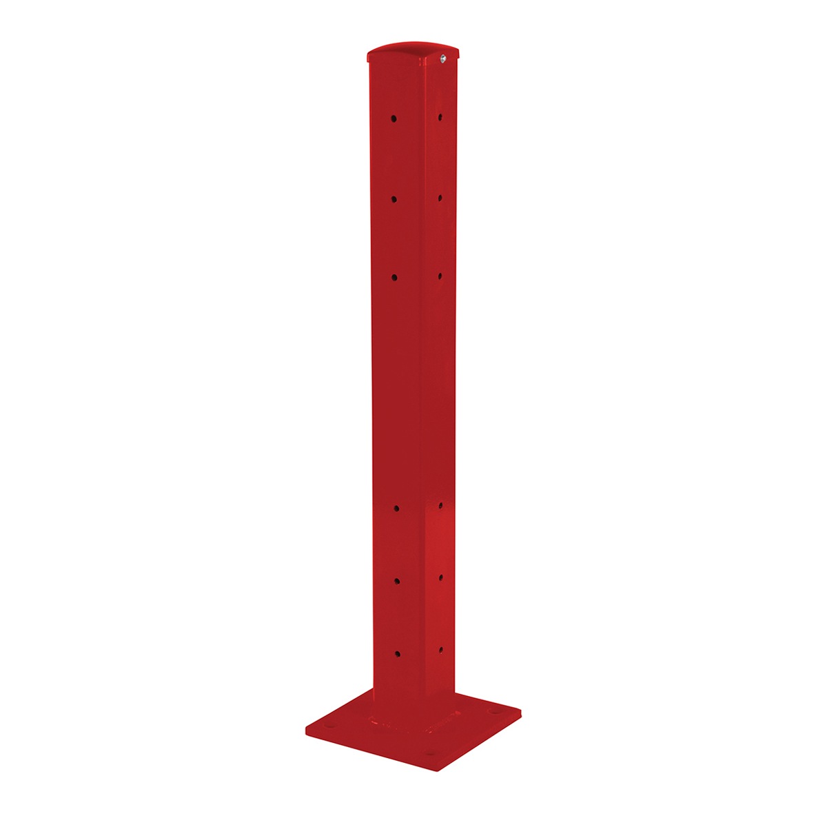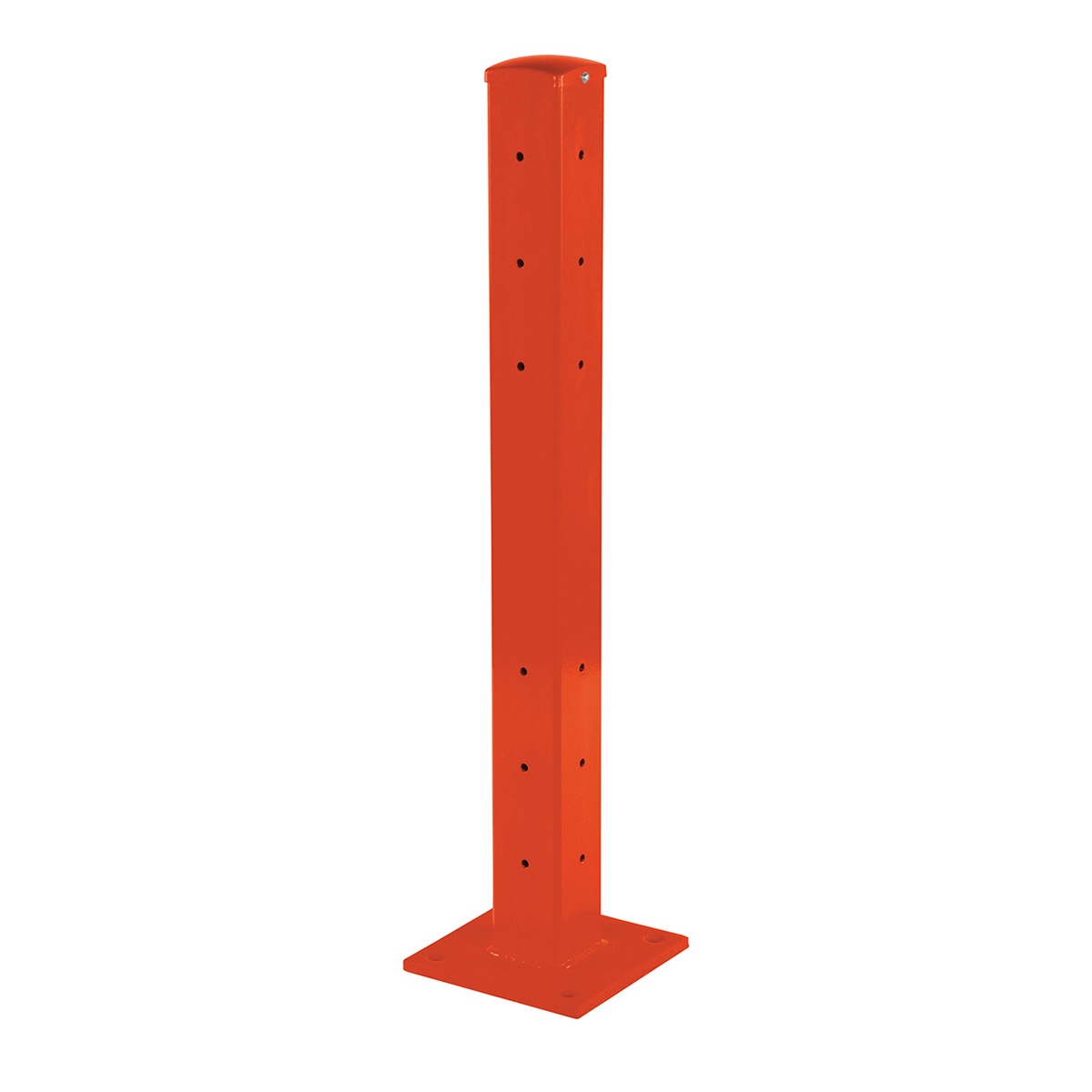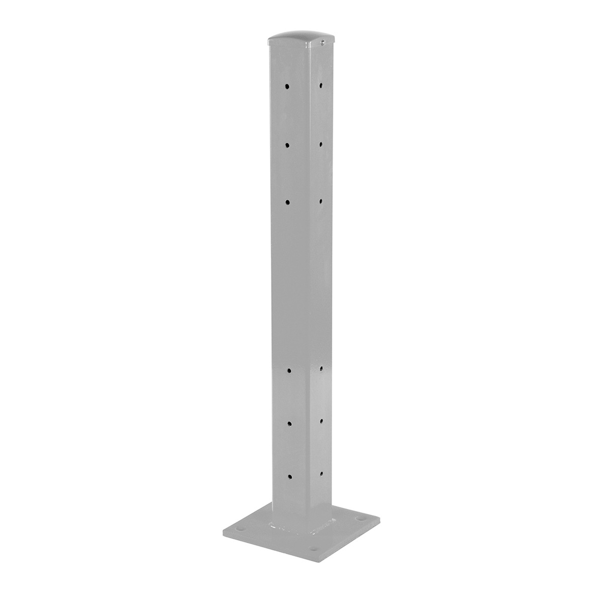 Create a modular system to protect equipment, inventory, and individuals from damage or injury with this highly visible powder coat yellow Structural Guard Rail. Triple ridge corrugated rails are constructed from 1/8″ thick material, made for high impact resistance indoors or out. Posts are constructed of round corner 1/4″ thick material. The steel base plate measures 10″ square and is 5/8″ thick. Bolts and washers are provided with individual rail sections. Concrete mounting kit is available separately. Provide a strong barrier with easy accessibility with our Drop-In Style rails. Slide rail sections into post saddles for simple assembly. Each Drop-In Style rail section includes two brackets. Bolt-On Style rails are designed for permanent installation. Models GR-TP-YL and GR-TP-GAL posts include mounting holes on all four sides for use in corners or center posts.