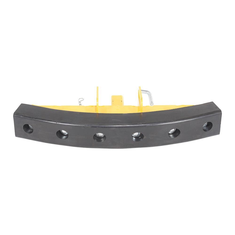 This hook base bumper is a nice addition to any industrial setting. With quick and seamless attachment, the unit is able to be used immediately. The base is constructed of steel to keep up well with the wear and tear of daily use. The front push bumper, made of rubber, helps to minimize any damage and abrasion that may occur. Steel portion of unit is powder coated for built n added toughness.