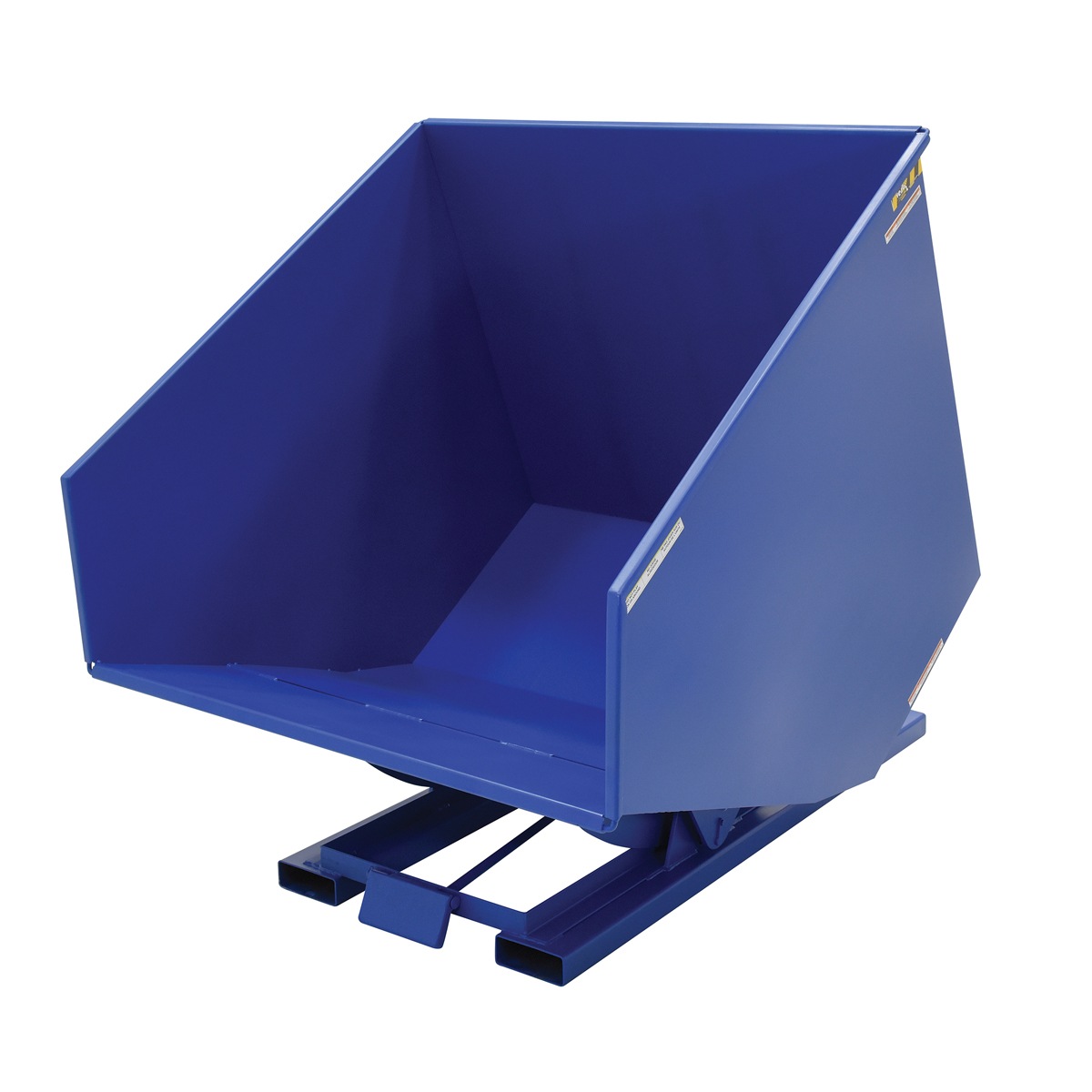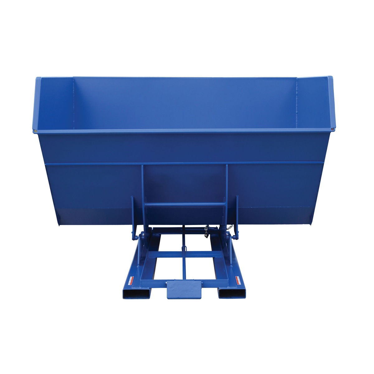 This Heavy Duty Self-Dumping Steel Hopper with Bumper Release automatically dumps when bumper release contacts the front of the dumpster. Hopper returns to an upright and locked position automatically after it dumps. Also includes a cable that may be operated from the seat of the fork truck to manually dump the hopper. The included safety chain restraint should be properly secured to a fork truck before dumping. Self-dumping hoppers facilitate compliance with OSHA General Industry rule 29 CFR 1910.178(m)(5)(iii) by allowing lift truck operators to remain at the controls of their truck throughout the dumping process.