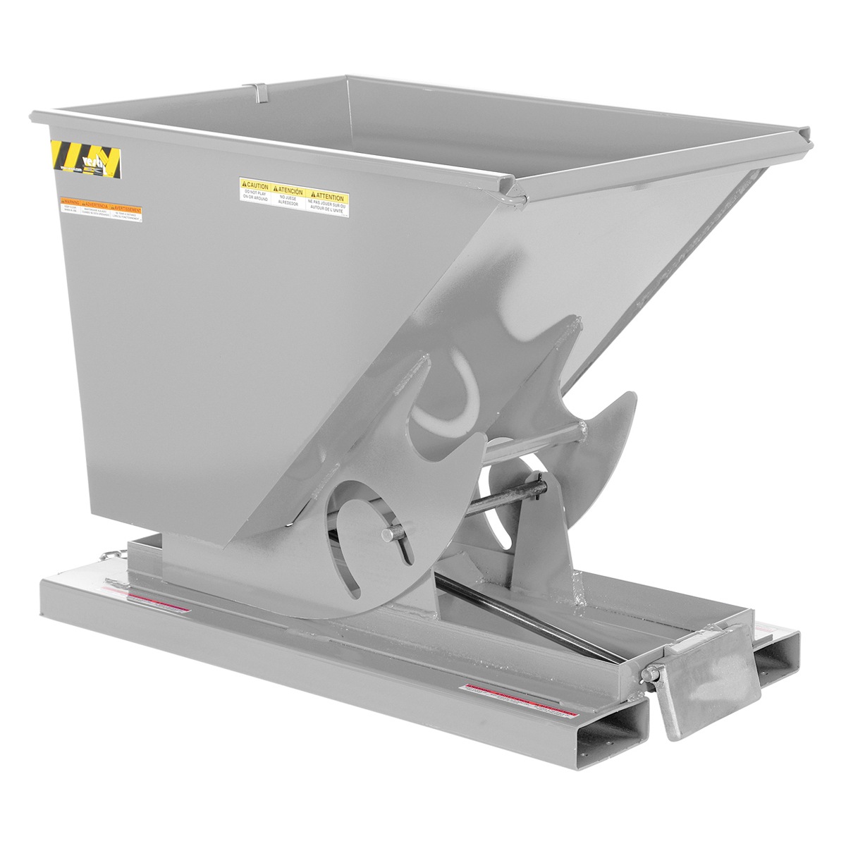 This Medium Duty Self-Dumping Steel Hopper with Bumper Release automatically dumps when bumper release contacts the front of the dumpster. Hopper returns to an upright and locked position automatically after it dumps. Also includes a cable that may be operated from the seat of the fork truck to manually dump the hopper. The included safety restraint should be properly secured to a fork truck before dumping. (Length Dimension is measured at top of chute.) Hopper is stackable if you stack the top hopper turned ninety (90) degrees from the bottom. Self-dumping hoppers facilitate compliance with OSHA General Industry rule 29 CFR 1910.178(m)(5)(iii) by allowing lift truck operators to remain at the controls of their truck throughout the dumping process.