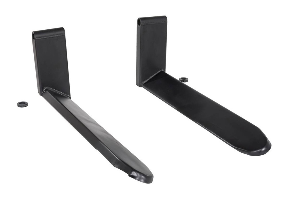 Picking up and moving round items on standard flat forks is often difficult and always dangerous. Now, with a fork set tilted to the center of the lifting unit, that difficulty is diminished. The inclined design of the forks creates a more stable lifting experience that limits movement and jostling of the products. Forks are constructed of steel and are simple to attach for immediate use. Powdercoat finish diminishes chances of possible product abrasion and adds a baked in toughness. Sold in pairs.