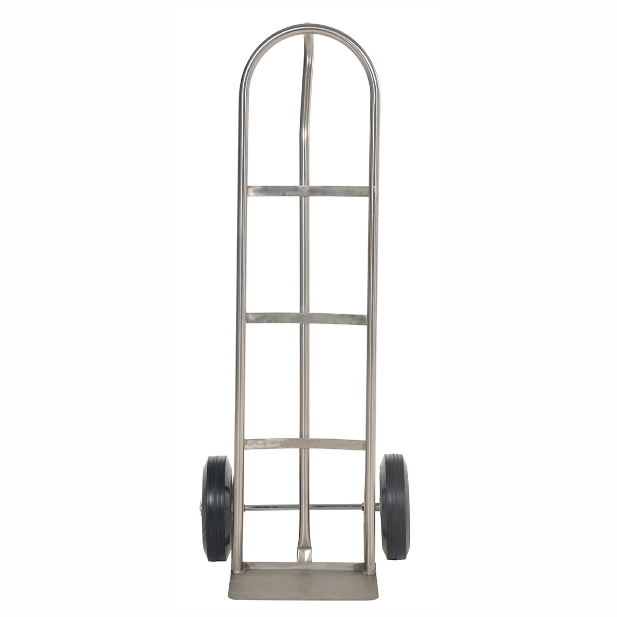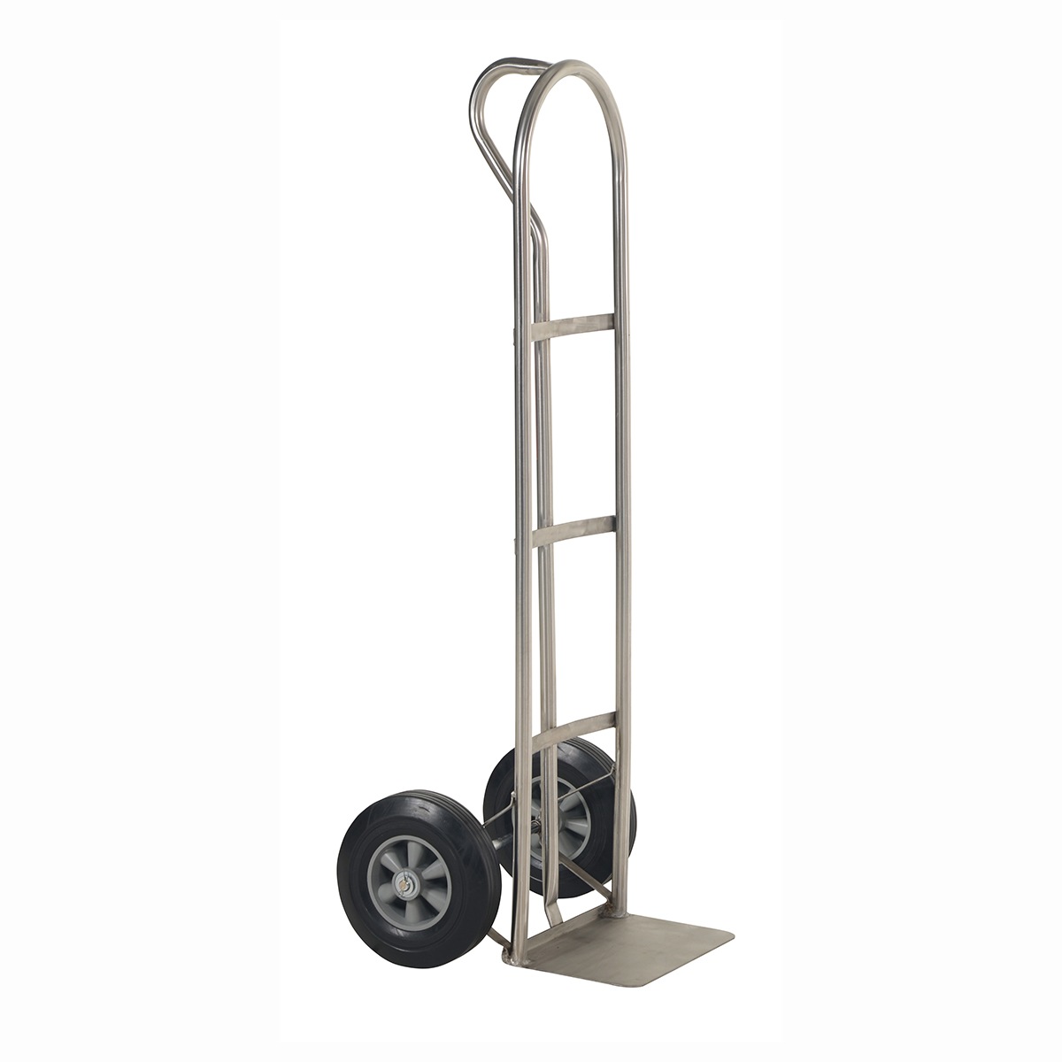 The “P” Handle Hand Truck is ideal for transporting heavy and awkward loads. This truck works well for the user that needs to free up one hand. The “P” shaped handle makes the truck easy to steer and maneuver. Axle and wheel hub not stainless steel.