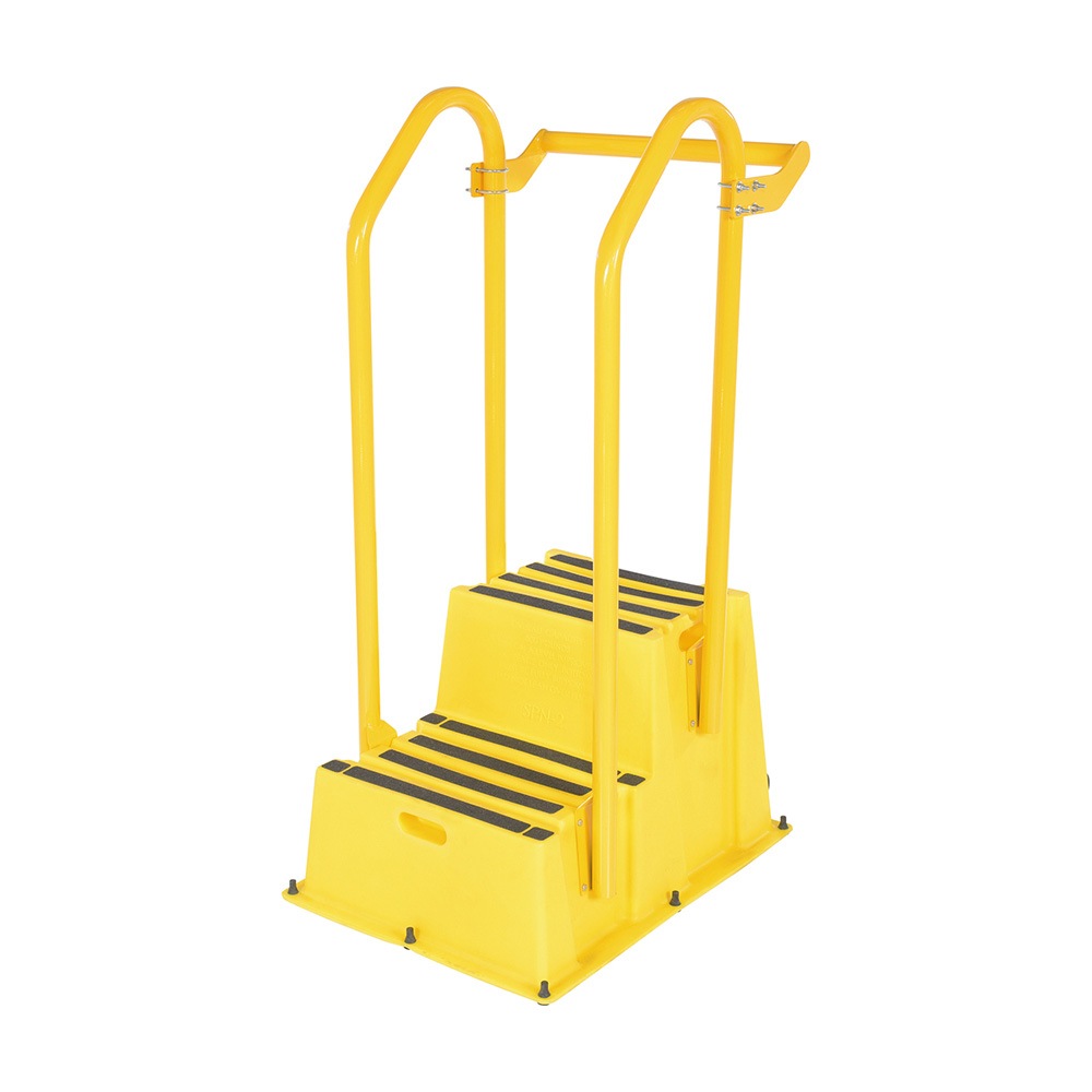 - Description: 2 Step Yellow w/ Handrails & Back Rails Portable
