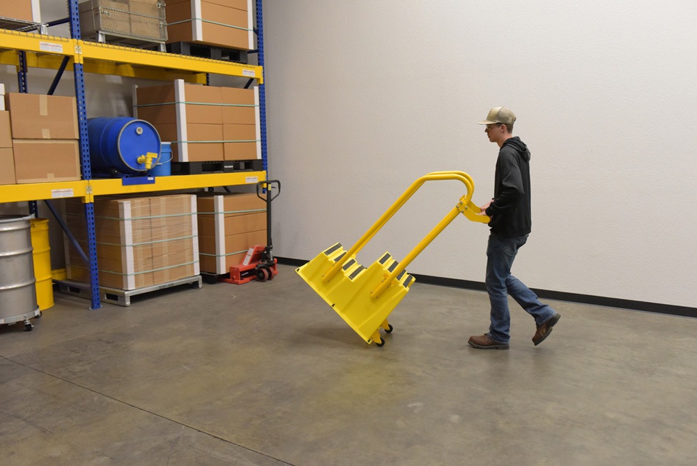 A poly step stool is a great asset for on the go or in a permanent setting. A lightweight design with front and side cutout handles, allow the user to easily transfer the stool to a preferred spot. The taped step surfaces ensure safe footing while traversing up and down the steps. Includes bolt on handrail and casters. The hand rails height allows the unit to be pushed or pulled into the desired position, minimizing bending and twisting by the user. Steps can be nested to minimize footprint when not in use.