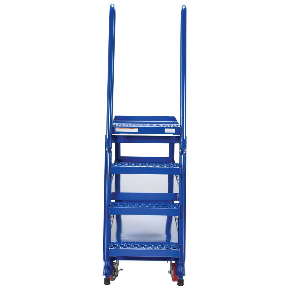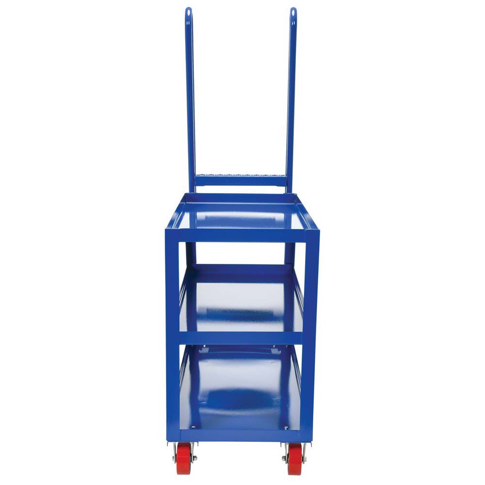 This oversized Hi-Duty Stockpicker Truck is perfect for large jobs. Ideal for oversized cartons, boxes, parts, and supplies. A spring loaded steel ladder for sure, safe climbing, and loading. Steps have non-skid footing with self-cleaning surface. This Stockpicker Truck has three (3) shelves. Built of durable steel construction. Unit is powder coated a blue finish.