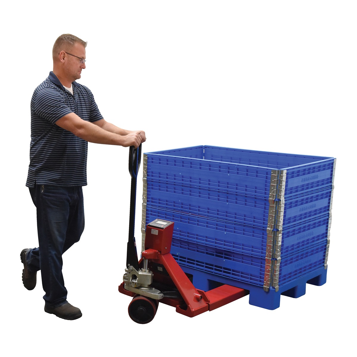 The scale provides a functional and time saving ability to weigh products while in the process of transferring. The large screen is easily readable and is at an extended height close to the handle. The scale is selectable in a variety of increments to adjust to the size of your load. It has keyboard calibration and functional setup with automatic zero capabilities. ?Digital filtering is used to help compensate for vibration and motion to make the Pallet Truck with Digital Scale smooth and accurate. The overall construction features a low profile design that enables the unit to be advantageous to a vast assortment of products.