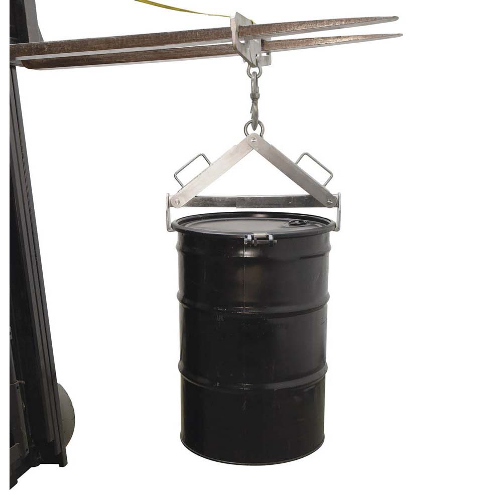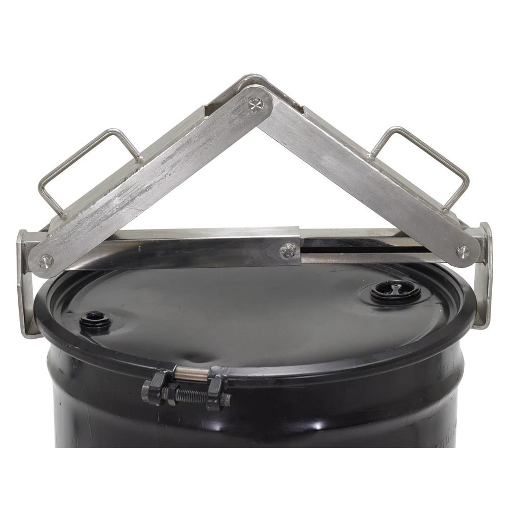 The stainless steel 2-point drum lifter is great for lifting 30 and 55 gallon steel or plastic drums. It makes transportation of open or closed drums easy. Allows quick, gentle loading into over packs and keeps drums upright during lifting to reduce spilling. Works perfectly with a hoist or an overhead crane. Full stainless steel construction.