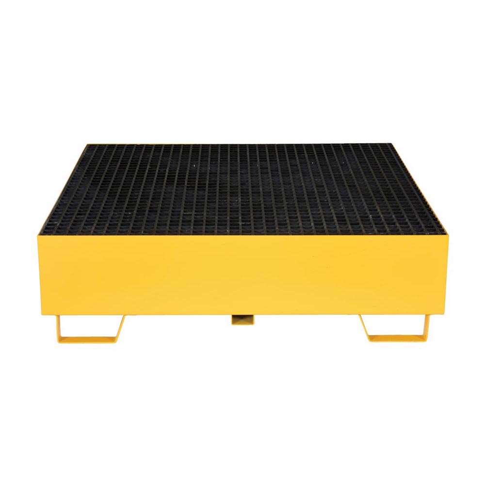 Store steel drums in the vertical position with this non-flammable heavy-duty, one-hundred (100) percent Recycled, Vertical Steel Retention Basin. The basin is constructed of steel to resist extreme heat environments. The rugged steel construction provides durability and repairability. Four way fork entry. Basins are stackable when empty to provide more space in a warehouse or storage area.