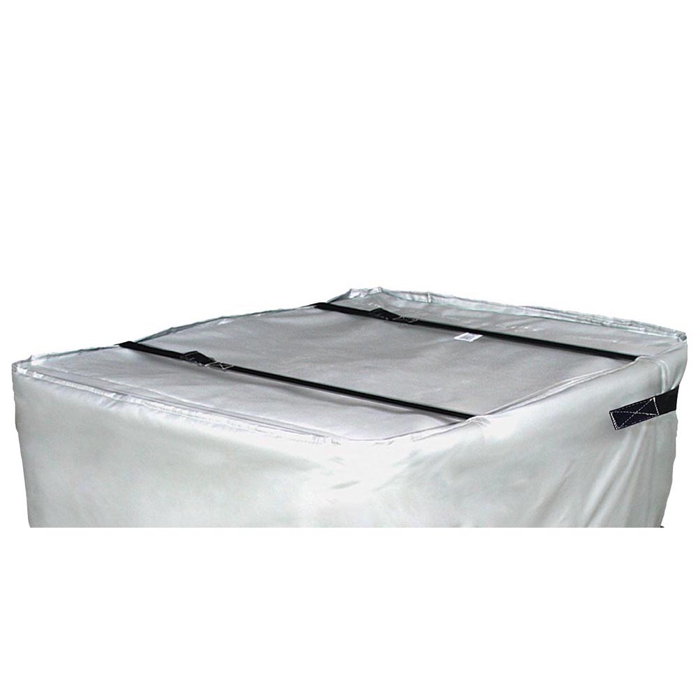 Adjustable Wrap-Around Tote Tank Heater, Fits Tote Tanks 42″ in Height with 40″W x 40″L up to 48″W x 48″L, 120V (Includes Standard Plug), 1,440 Watts, Full-Coverage Plug and Play System, Adjustable Nylon Straps with Buckles, Two Separate Heat Zones, Both Heats AND Insulates, Adjustable Thermostat from 50-160°F (10-71°C), Built-In Manual Reset High Temperature Limit at 195°F (91°C), Power cord 6 feet (1.8M) long, Spigot hole built-in, Patented Ground for your Safety, Designed for Indoor Use.
