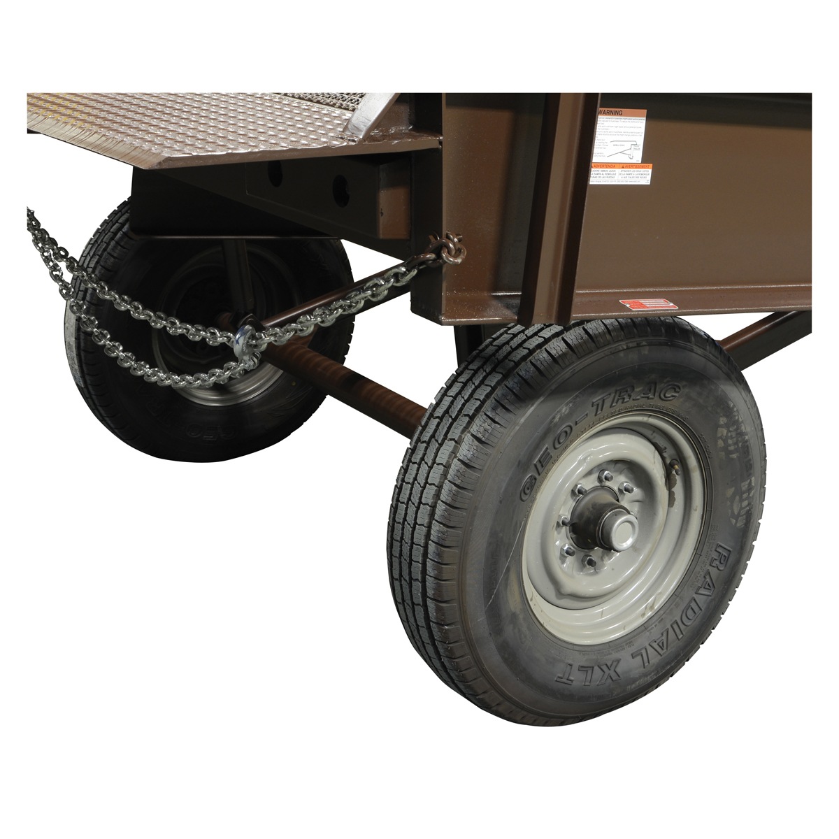 Pneumatic tire & hand pump hydraulic lift (5 miles per hour max tow speed) (not available in YRD models).